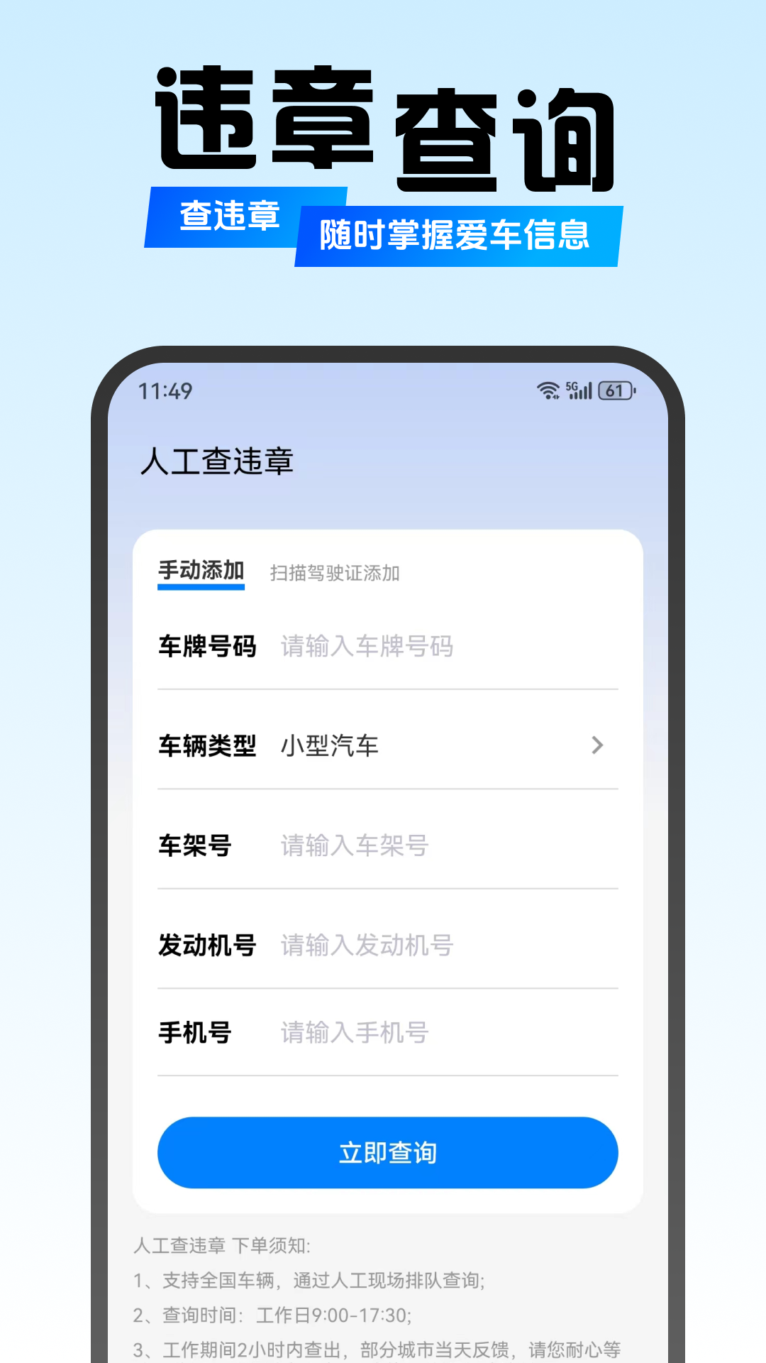 2. 人工查违章服务:通过专业的人工服务,避免繁琐的排队过程,直接获得真实有效的违章数据。