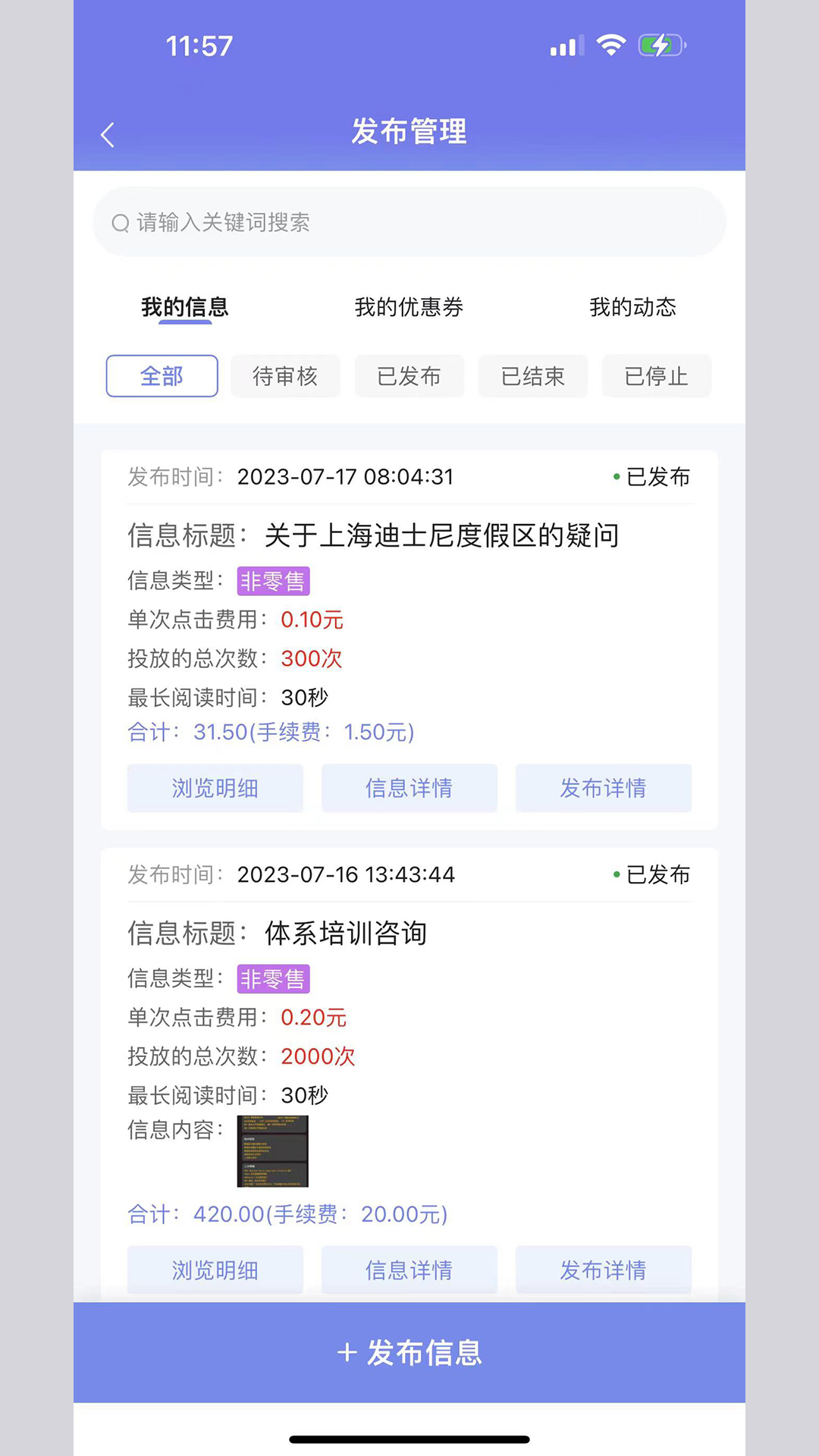 1. 信息发布:通过简单的步骤发布各类信息,包括商品出售、业务宣传和优惠券等,快速触达目标受众。