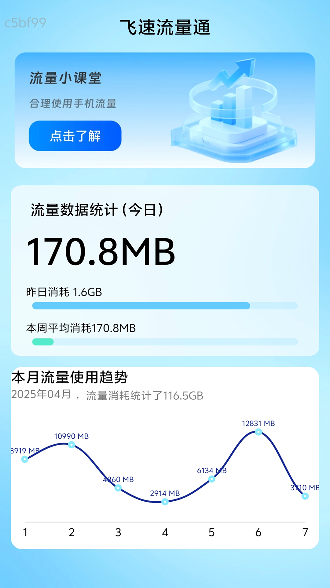 2. 流量数据统计:精准追踪用户的流量使用情况,以图表形式展示流量消耗趋势,让用户对流量去向一目了然。