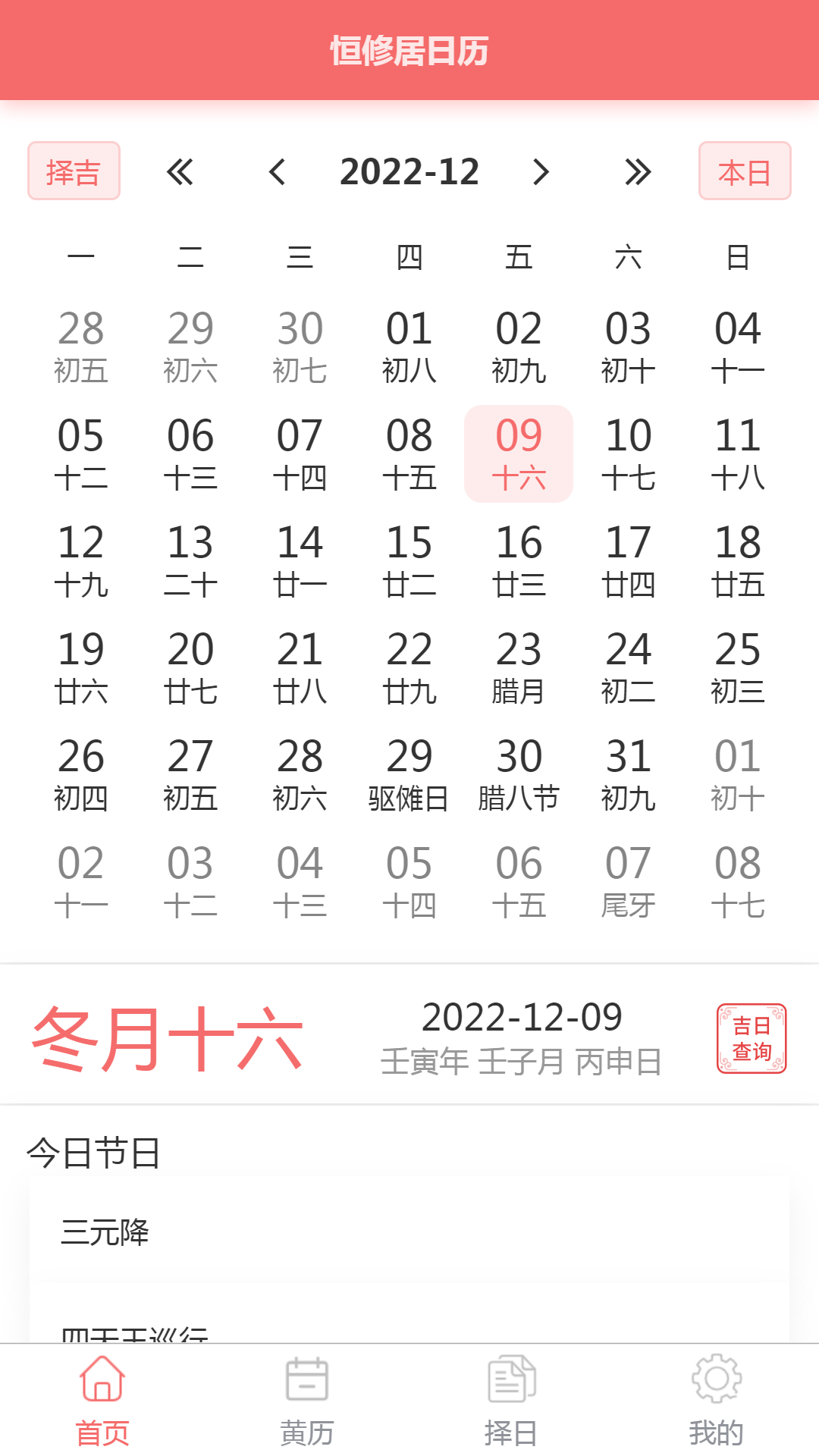 3. 精准日历:恒修居日历提供的日期信息经过严谨的校对,确保每一个节气、节日都准确无误,让用户在安排日常事务时更加得心应手。