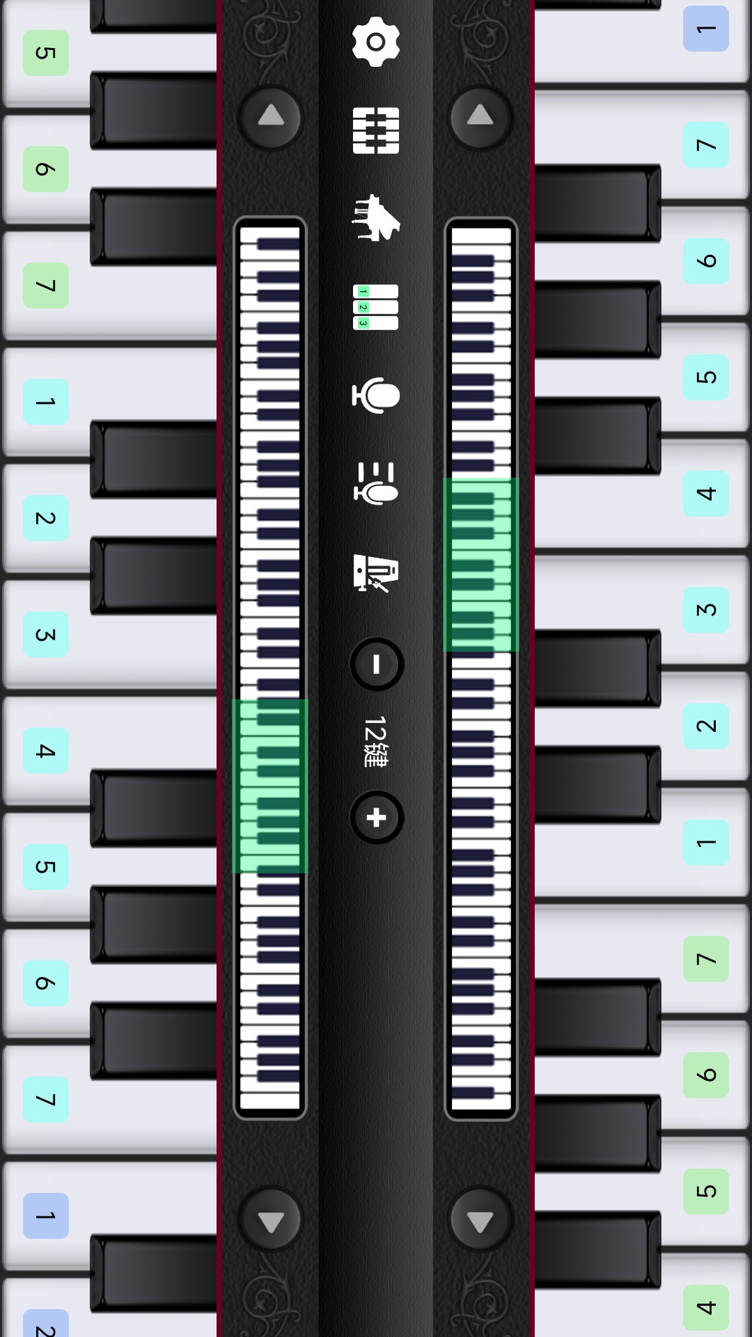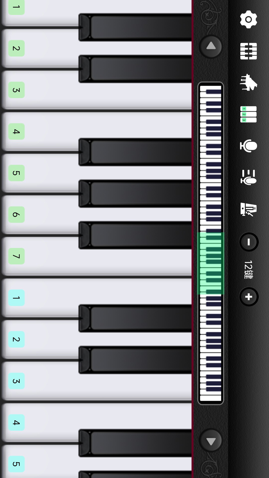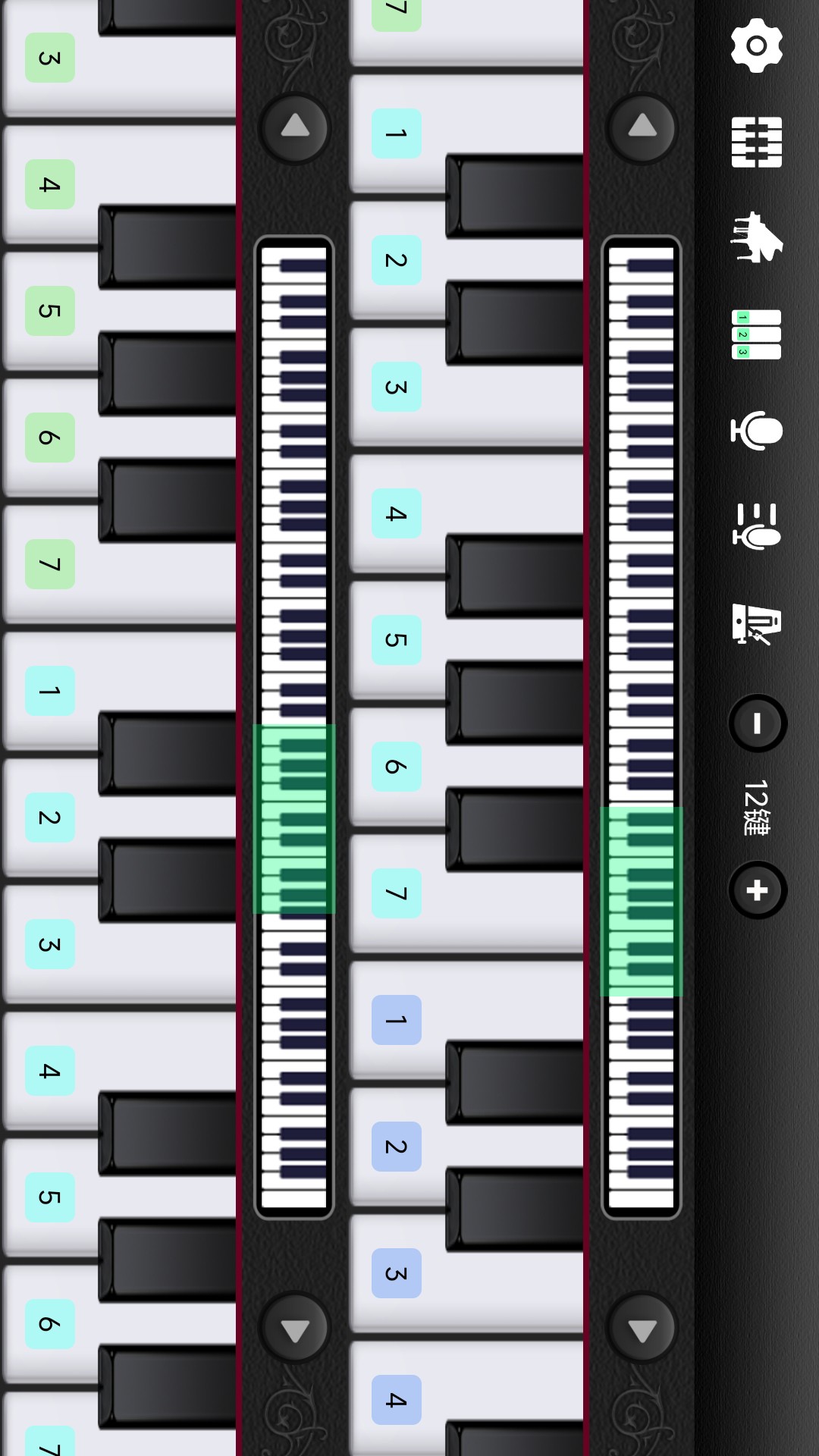 在钢琴界面左右两边有+和-按钮,点击这些按钮来调节钢琴块的宽度,以适应自己的弹奏习惯。