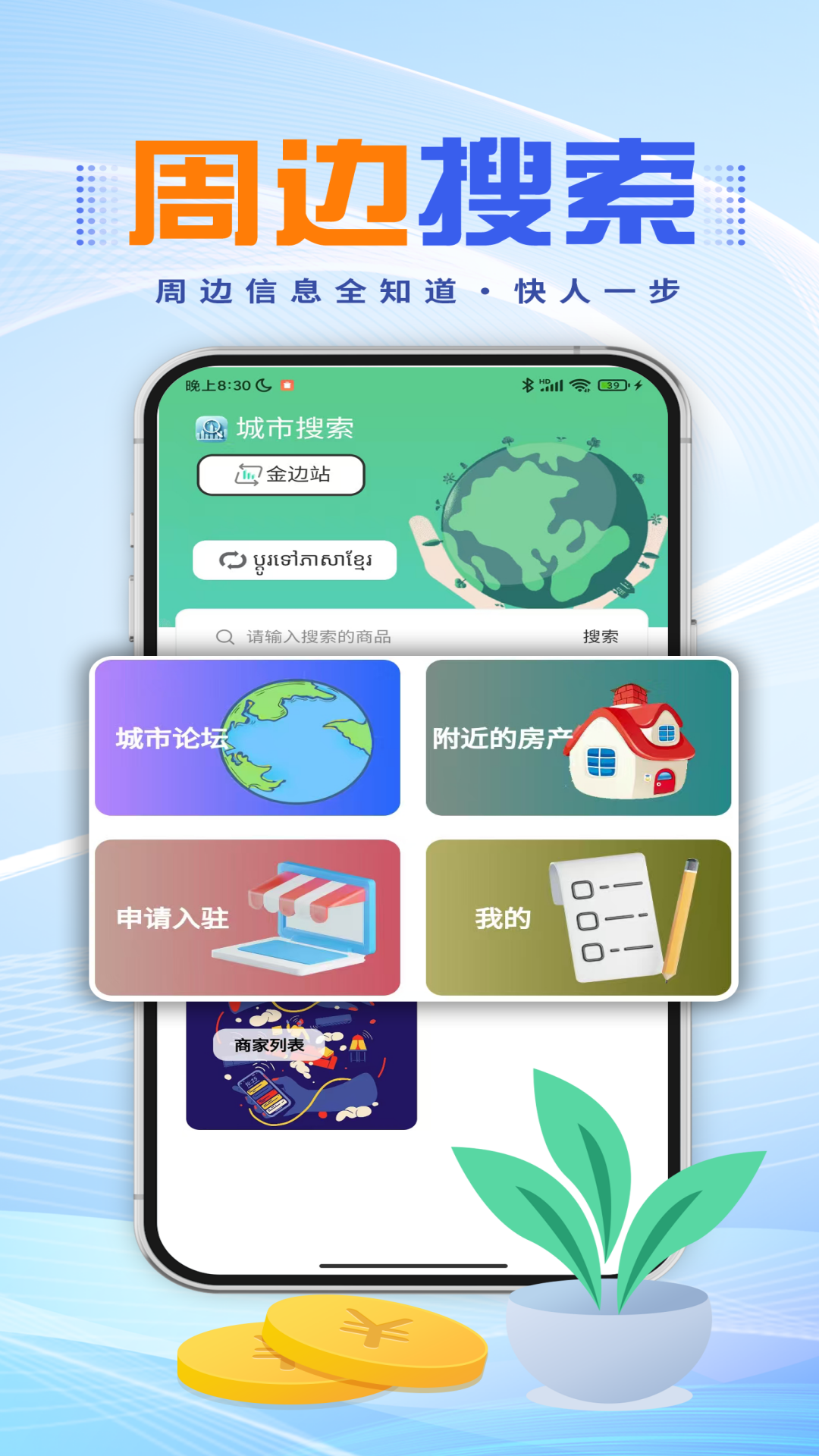 城市搜索是一款创新的软件,为用户提供便捷的商品、服务和房产搜索体验。无论你是在寻找二手房、商家还是其他生活服务,城市搜索都能帮助你轻松找到所需的信息。我们的平台采用专业翻译技术,打破了语言障碍,让用户在中文和柬文之间无缝切换,确保每个人都能快速获取所需的精准信息。无论是工作需求还是日常生活,城市搜索都能成为你得力的助手,让生活更加高效。