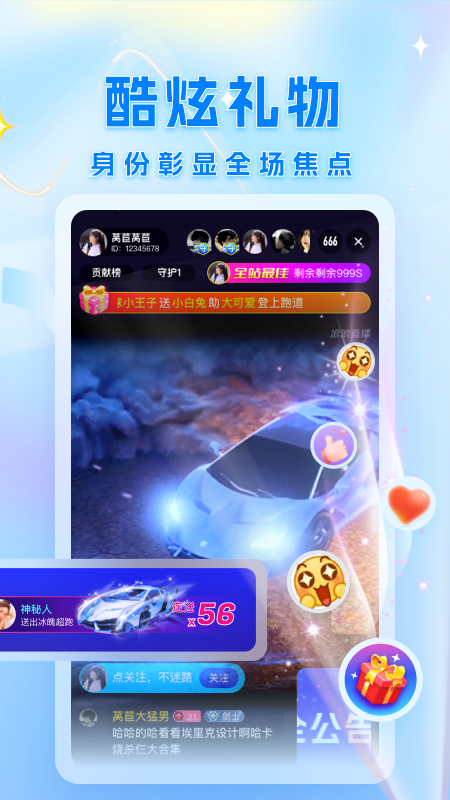 4. 专属礼物系统:通过赠送礼物来表达对主播的支持,礼物种类丰富多样,增强了用户与主播之间的互动。