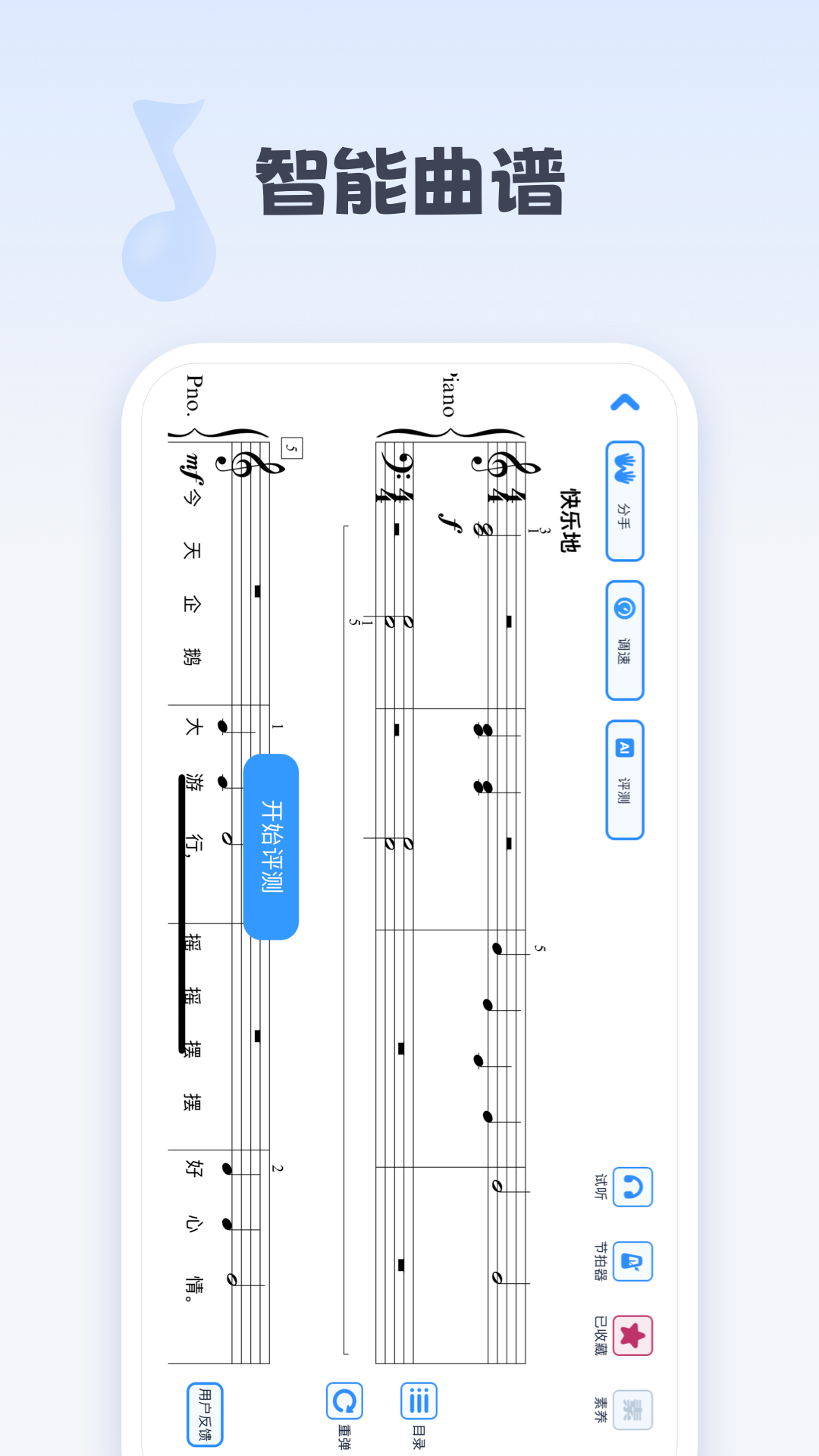 1. 一键测评:通过简单的操作获得即时的演奏评分,帮助识别和改正演奏中的问题。