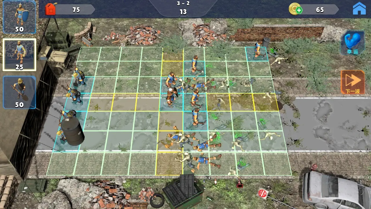 玩家需要在地图上放置不同类型的士兵,每种士兵都有其独特的攻击方式和防御能力,根据僵尸的种类和数量合理安排阵型。