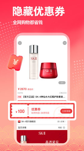 支持一键领取全网优惠券,用户在购物前可以快速查找并领取到适合自己的优惠,节省时间和金钱。