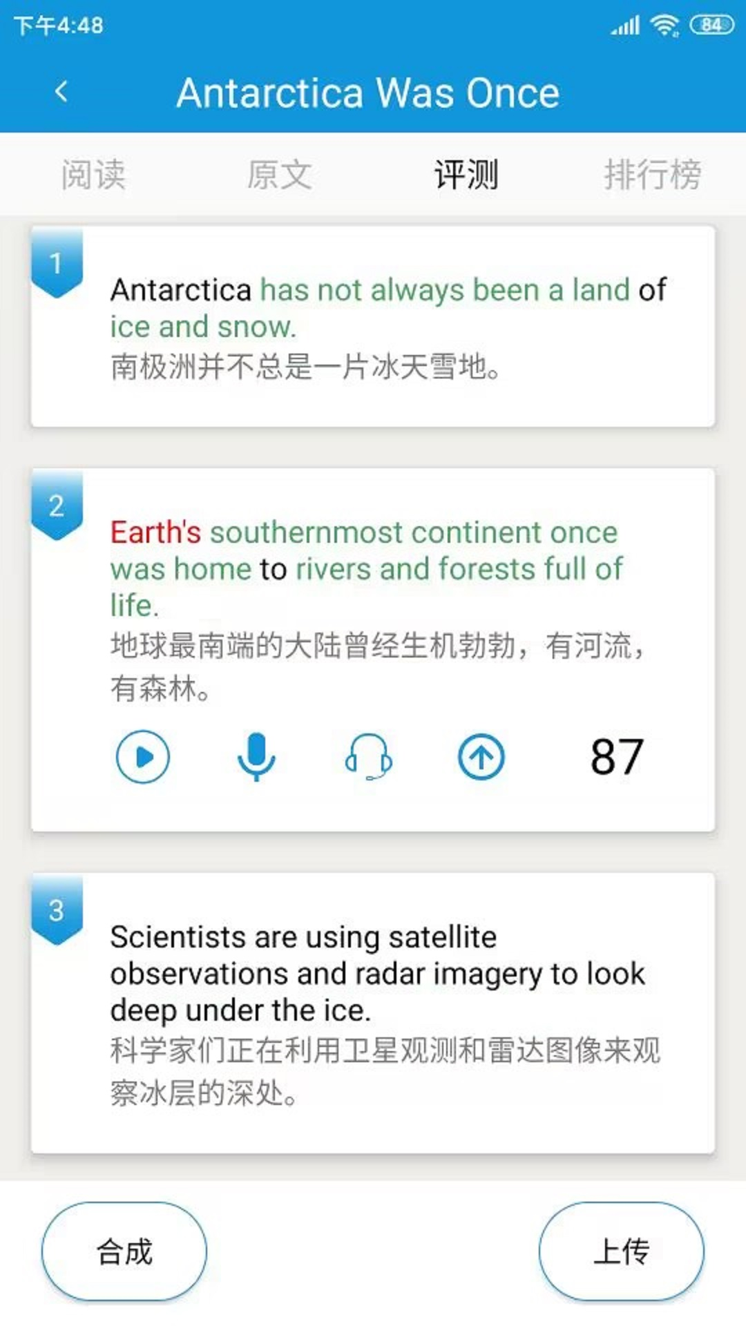 2. 采用智能语音技术进行口语评测,清晰了解到自己的发音水平和存在的不足,做到有的放矢。