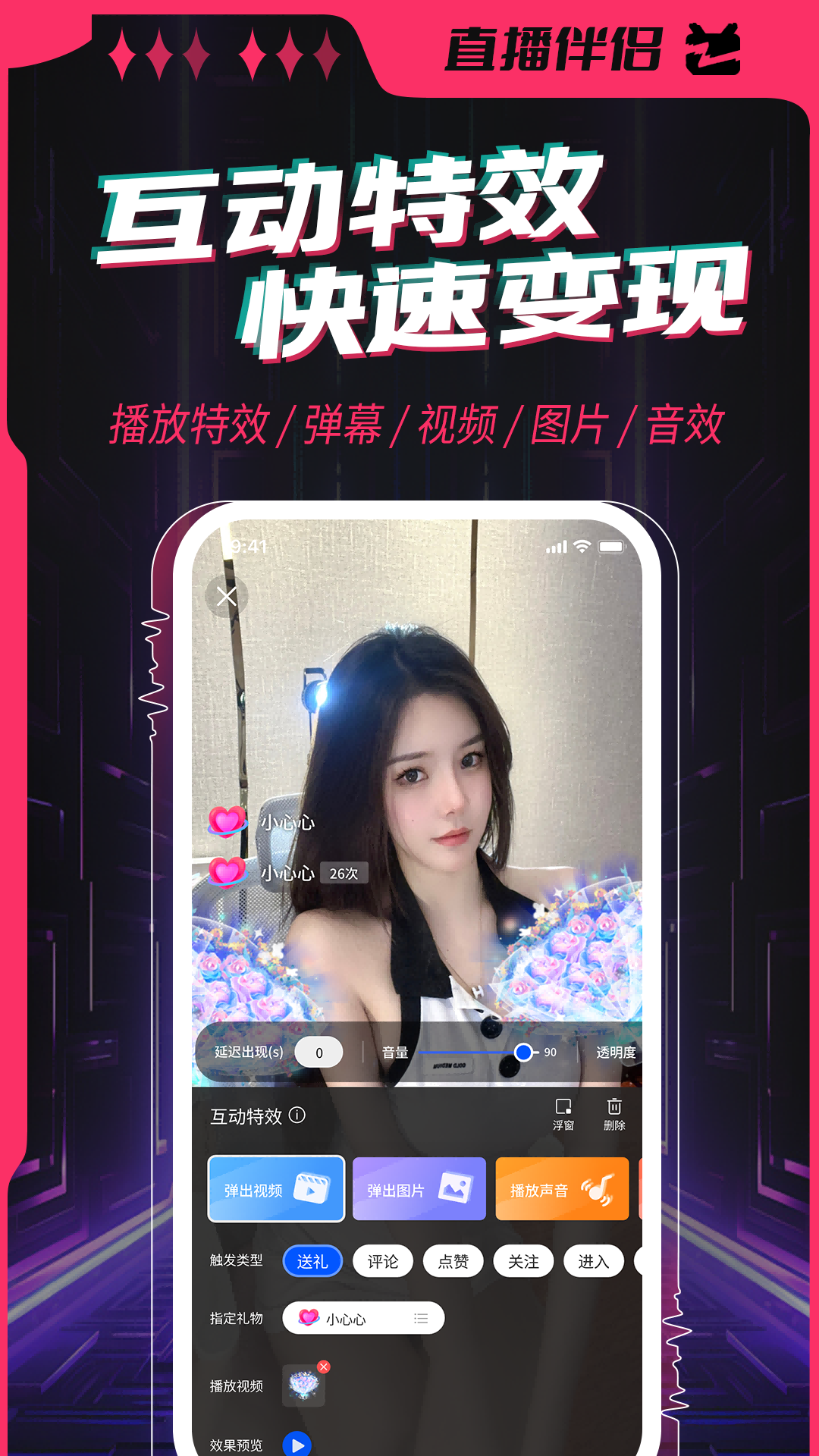 5、弹幕特效让直播间的互动更加生动,观众的礼物、评论和点赞都能通过特效呈现,增强直播的趣味性。