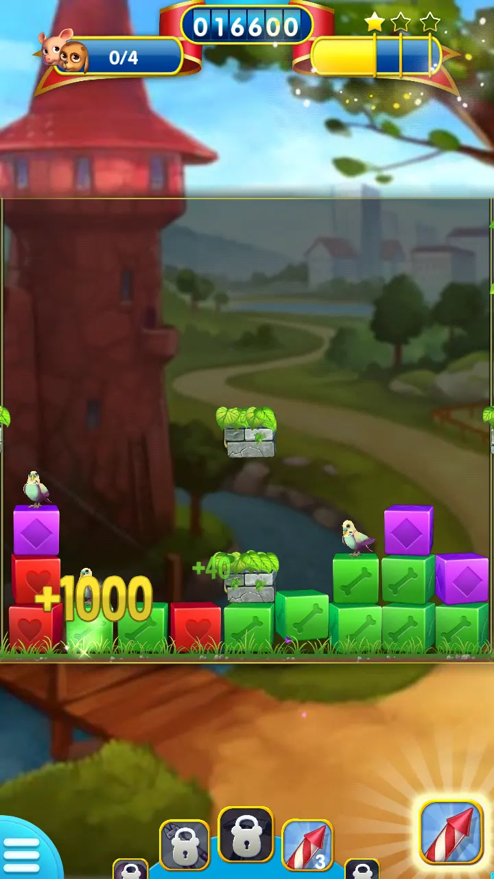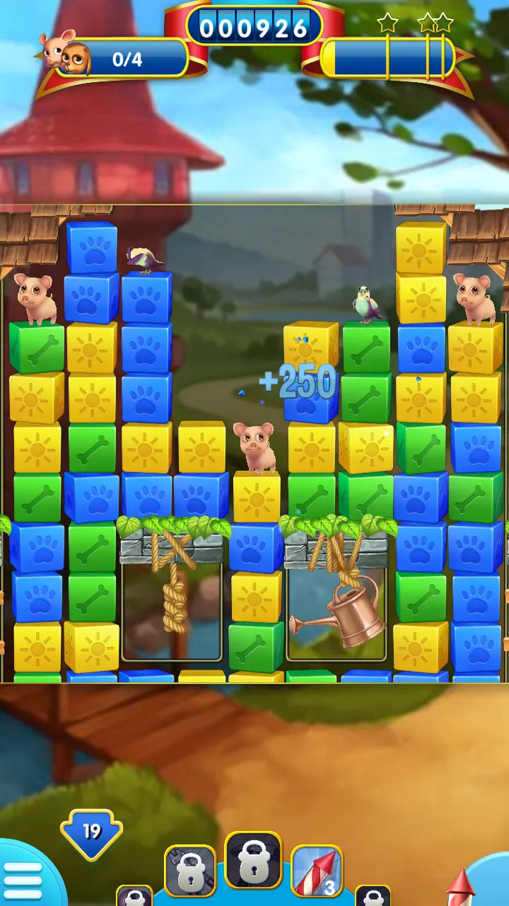 观察局势,尽量优先消除靠近小动物的方块,可以加快它们的降落速度,缩短过关时间。