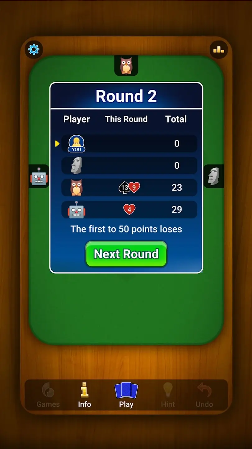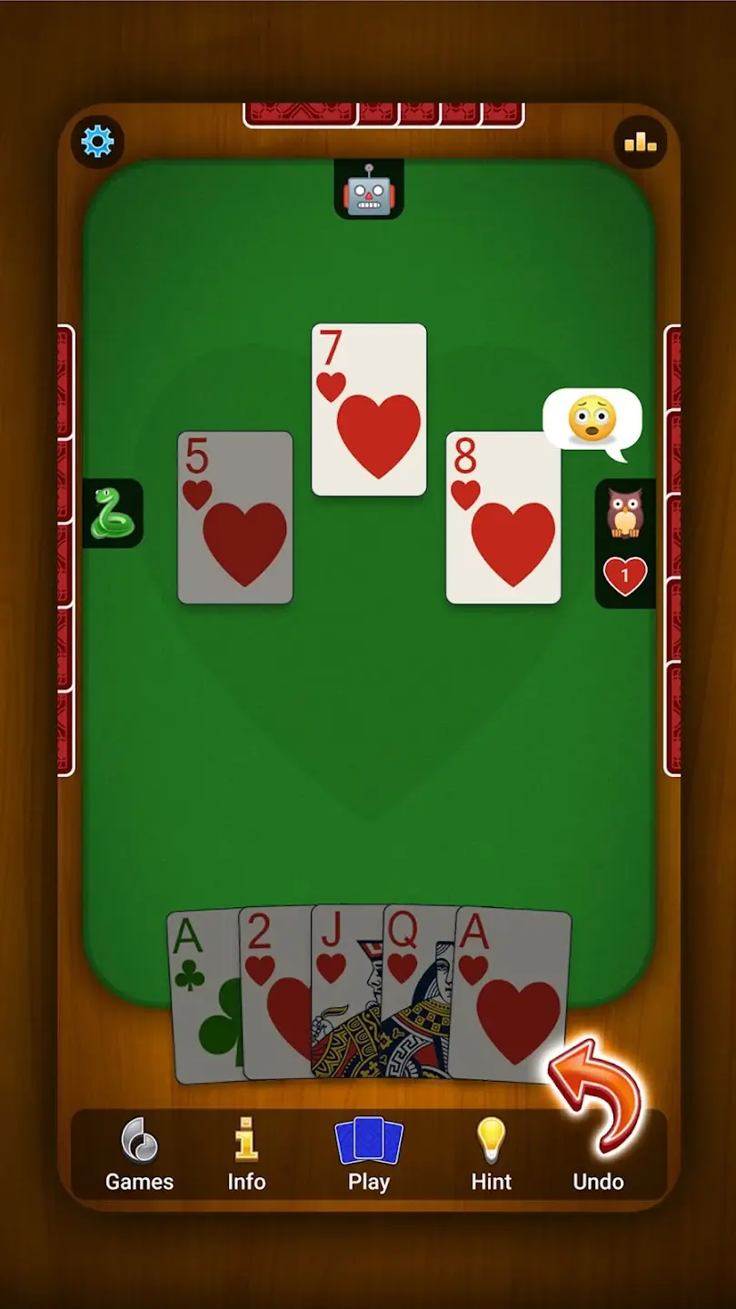 与传统纸牌游戏不同,红心大战中有智能AI对手,他们会根据你的出牌风格进行适应性调整,让每一局的对战都充满新鲜感,挑战性十足。