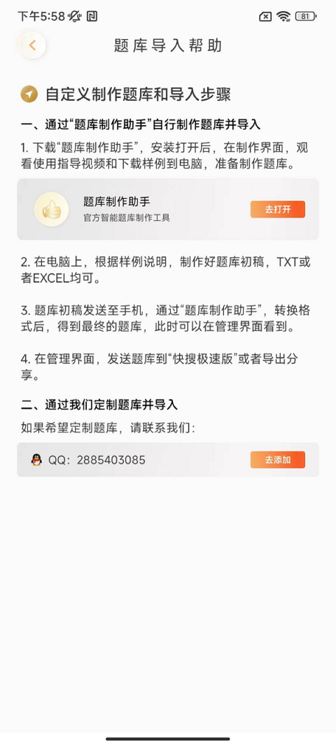 Q2:如何导入自定义题库?