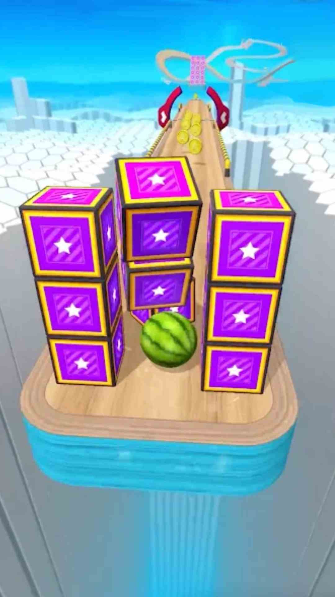 在天空滚球球中,玩家的目标是引导小球安全抵达终点,尽可能收集沿途的奖励。游戏的核心操作是通过触摸屏幕控制小球的左右移动。看似简单的操作,却需要玩家高度集中注意力,预判前方道路的走向。