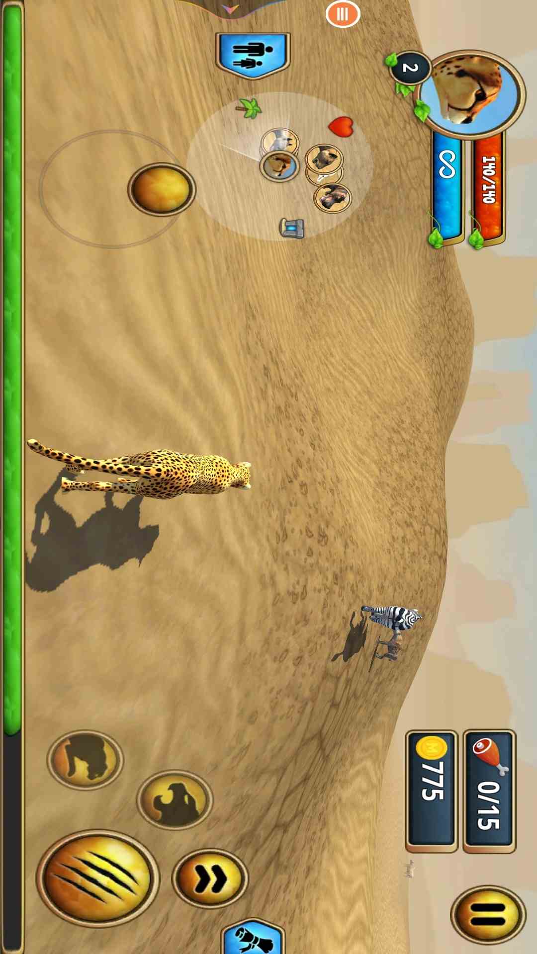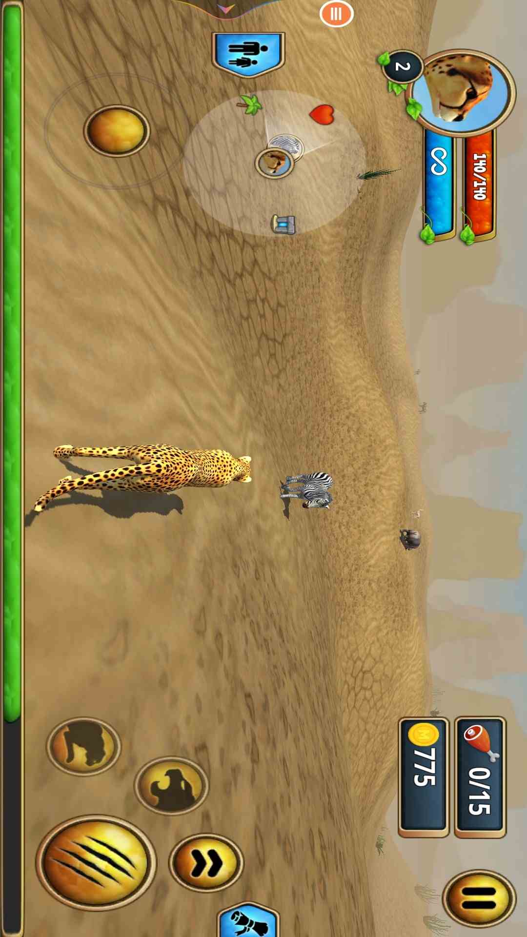 游戏中猎豹的动作设计流畅而逼真,奔跑、跳跃、怒吼、攻击等一系列动作都经过精心制作,让玩家能够充分体验到猎豹的力量和敏捷。
