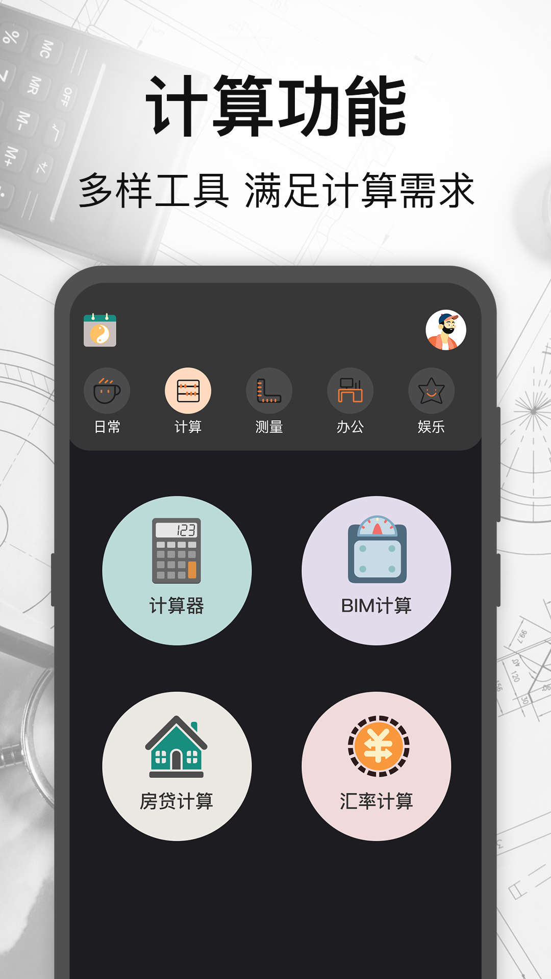 2、实用计算工具:提供计算器、房贷计算、汇率计算和BMI计算等多种计算工具,满足用户在不同场景下的计算需求。