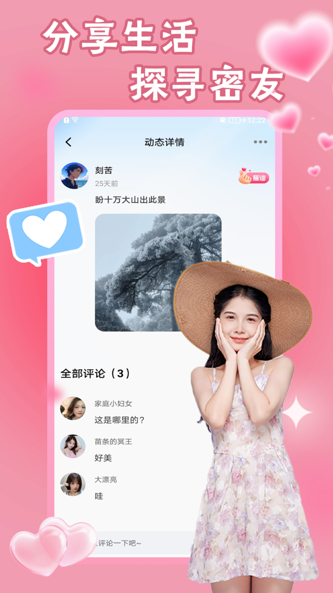 乐意为用户提供一个全新的社交平台,让每一个人都能在这里找到志同道合的朋友。无论是想要倾诉心声,还是希望结识新朋友,乐意都能满足你的需求。我们关注用户的情感需求,努力创造一个温暖、真诚的交流环境,让每一位用户都能感受到陪伴的力量。