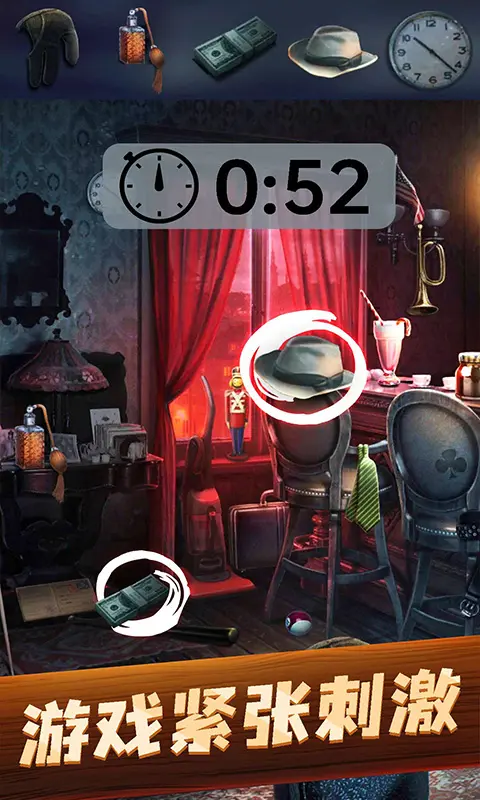 独特的暗黑系风格营造了浓厚的悬疑氛围,使玩家在寻找物品的过程中,感受到紧张刺激的侦探气息。