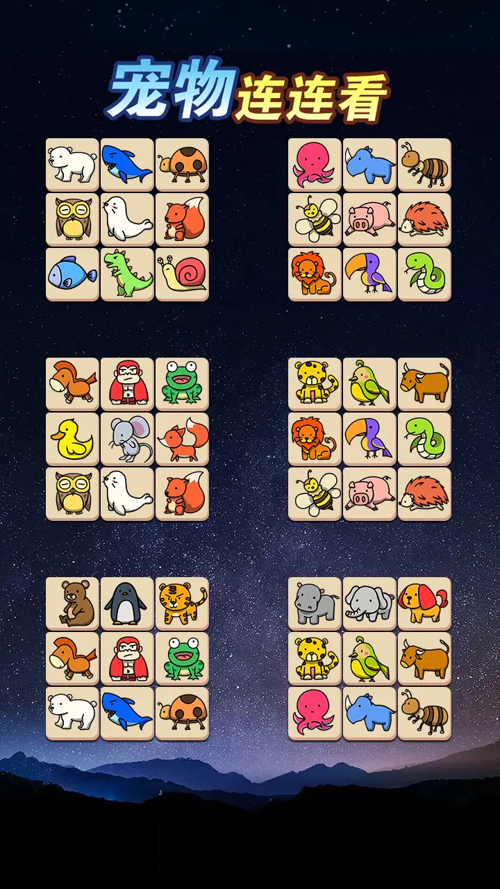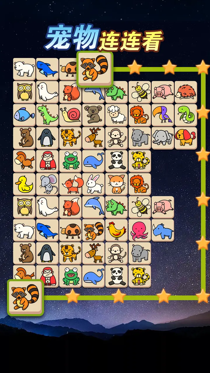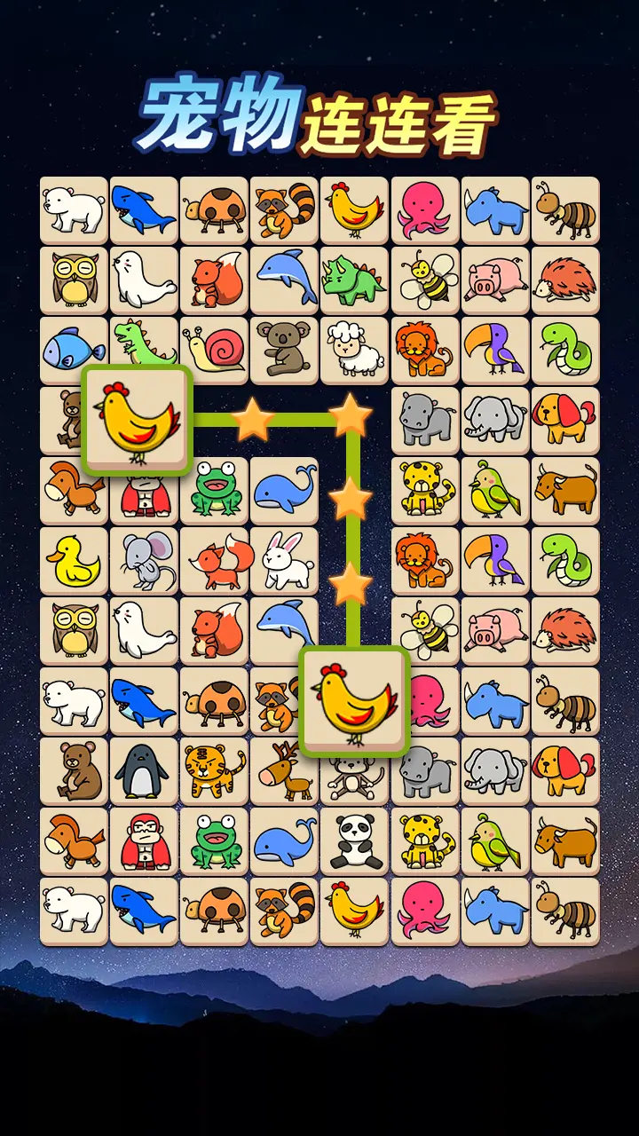 宠物连连看是一款充满乐趣的消除类休闲游戏,专为喜欢轻松挑战的玩家设计。通过点击相同的两个小动物来将们消除,目标是在规定时间内完成消除任务,顺利通关。可爱的动物形象和卡通画面为游戏增添了不少趣味,使每一次挑战都充满惊喜和乐趣。每一关都设计得独具匠心,为玩家带来愉悦的体验。游戏提供了丰富的关卡和多样的道具,你需要做的就是在规定的时间内消除所有的小动物。