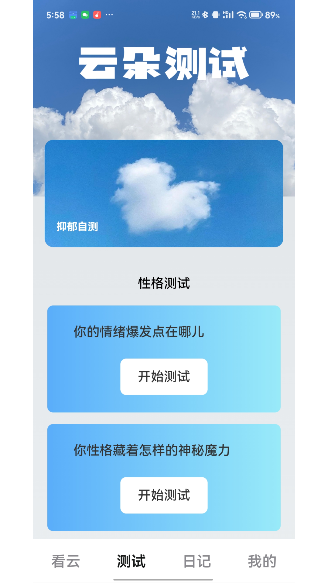 2、测试模块提供多种心理健康评估工具,帮助用户认识自己的情感和心理状态,促进心理发展。