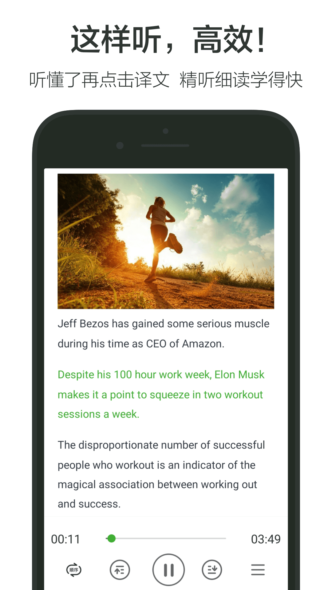软件提供单句循环播放的功能,自定义循环次数,便于进行精听练习。