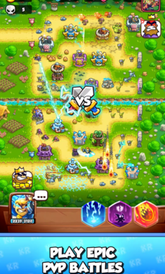 王国保卫战战略对决是一款将塔防的经典策略与实时对战的紧张刺激完美融合的作品。你将化身运筹帷幄的指挥官,与其他玩家展开智慧与策略的较量。你需要精心布置你的防御阵线,招募并升级各具特色的英雄,巧妙运用各种法术,抵御一波又一波的敌人。每一次决策都至关重要,胜负往往只在一念之间。在瞬息万变的战场上,只有最优秀的战略家才能取得最终的胜利,赢得属于自己的荣耀和奖励。准备好迎接挑战,成为塔防世界的霸主了吗?