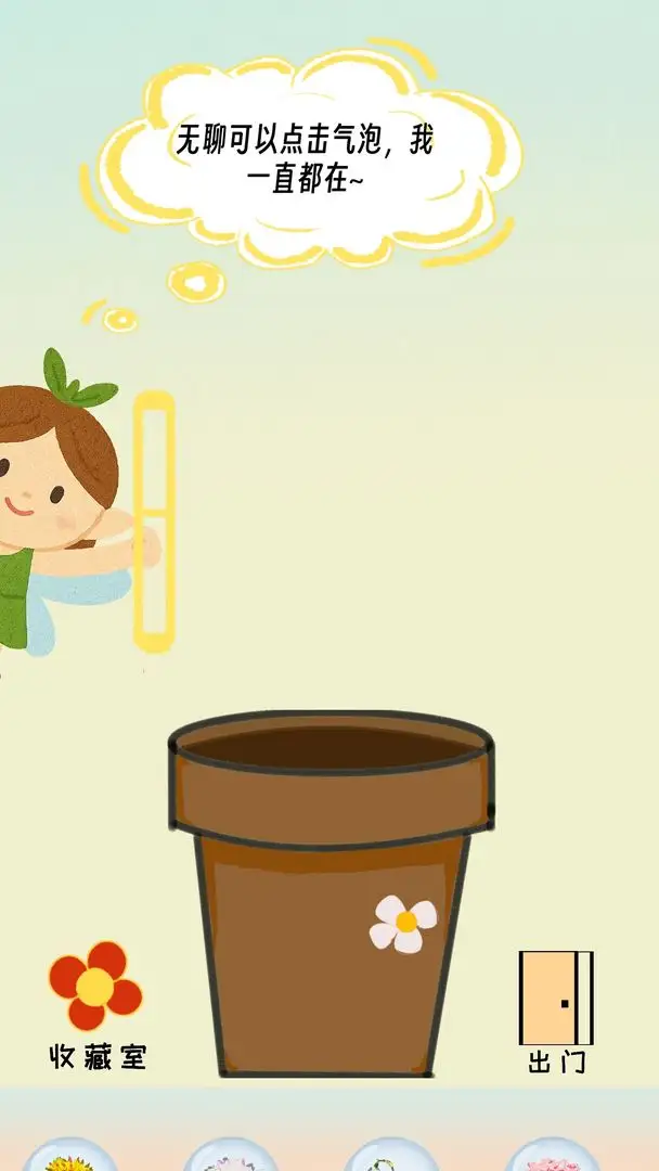 种出一朵小红花是一款轻松休闲的种花养成小品。你将拥有一个神奇的心意花盆,通过在日常生活中触发的各种随机事件来收集心意。这些心意可以是积极的,也可以是充满恶搞趣味的,你的选择将直接影响最终花朵的种类和效果。尝试不同的花朵搭配,看看会产生怎样意想不到的奇妙组合。当你积累足够的心意,或许就能得到神秘的馈赠,培育出那令人期待的小红花。无需任何付费,尽情享受这份纯粹的乐趣吧!