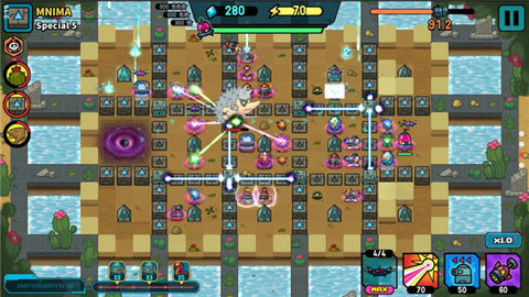防御塔组合策略:单一类型的防御塔在后期往往难以应对复杂多变的怪物群。尝试组合不同类型的防御塔,减速塔 火焰塔 炮塔,形成控制、持续伤害和爆发伤害的完美配合。根据地形和怪物进攻路线,合理分配各类防御塔的数量和位置。