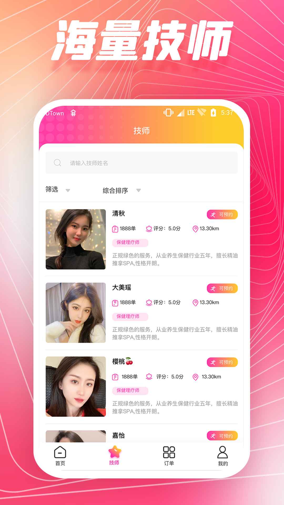应用提供完善的技师筛选机制,用户可根据距离、评分、擅长项目等条件筛选合适的技师,提升预约效率。
