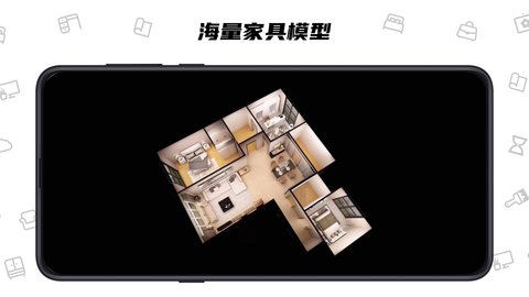 应用内支持人工智能,用户可以一键拖入整个房间的模型,自动智能摆放,高速出图。