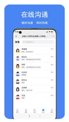 用户可随时与企业HR在线沟通,快速获取职位相关信息,增强求职的互动性和效率。