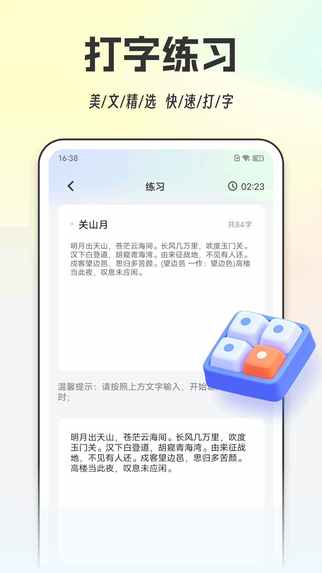 支持实时反馈功能,用户在练习过程中可以得到即时的打字反馈,帮助其及时纠正错误。