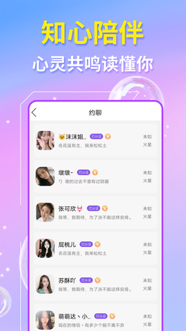 软件具备24小时在线陪聊服务,用户随时随地都能找到人聊天,缓解孤独感,享受温暖的陪伴。