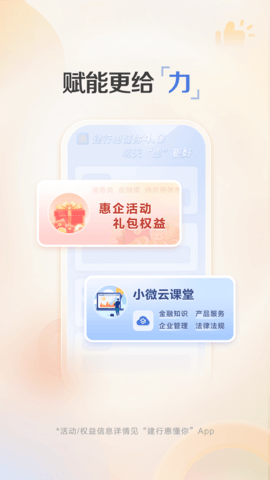 贴心服务方面,建行惠懂你提供了优惠权益礼包,上线惠企活动和丰富权益礼包,赋能企业成长。